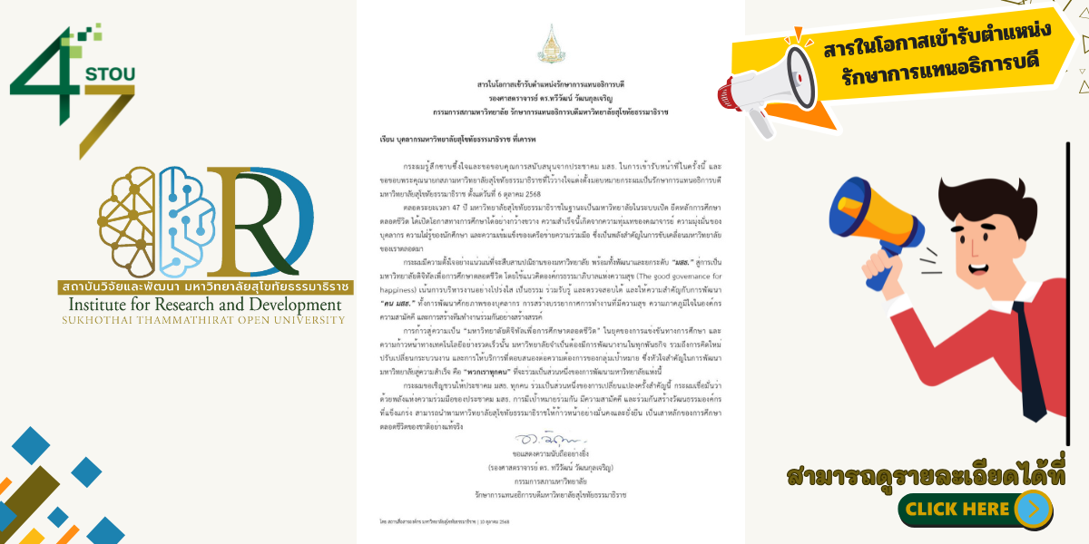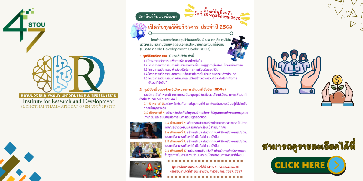 ทุนวิจัยที่สถาบันวิจัยและพัฒนาสนับสนุนทุนอุดหนุนการวิจัยให้กับคณาจารย์และนักวิจัย มสธ.