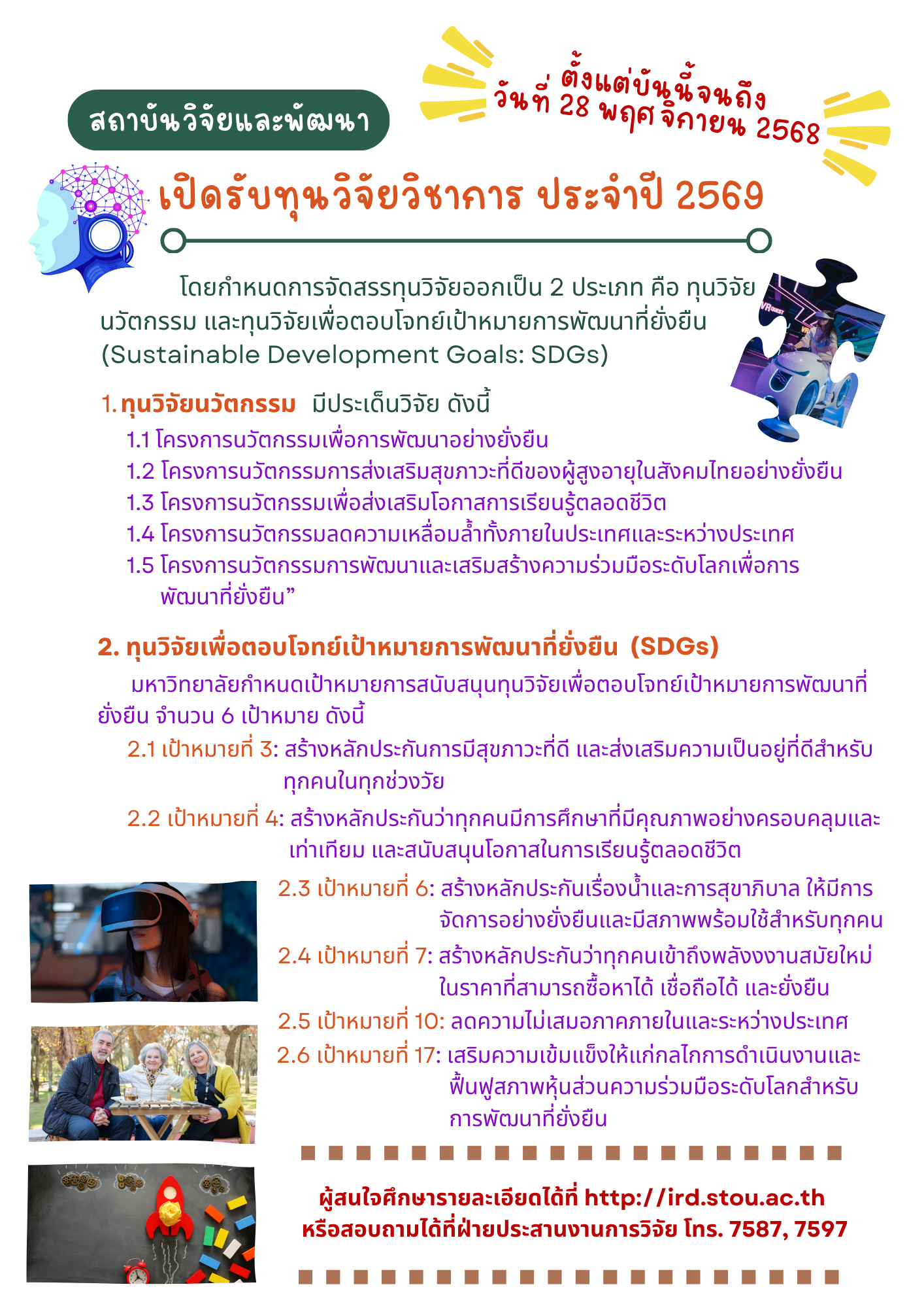 1.1 ประกาศเปิดรับทุนวิจัยด้านวิชาการ พ.ศ.2569
